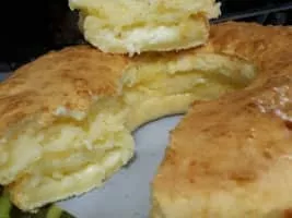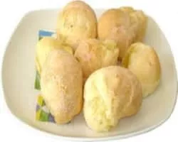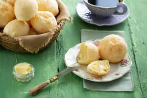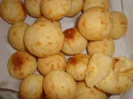 Pão de queijo or Brazilian cheese bread is a small, baked cheese roll or cheese bun, a popular snack and breakfast food in Brazil. It is a traditional Brazilian recipe, from the state of Minas Gerais.