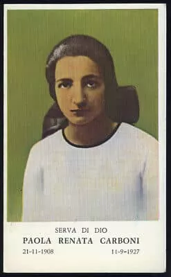 Paola Renata Carboni was an Italian teenager who is venerated in the Roman Catholic Church. Carboni was the fourth of eight children of a physician who refused to permit his children to attend church or be instructed in religion. An aunt secretly had the girl baptized and taught her the beginnings of the catechism.