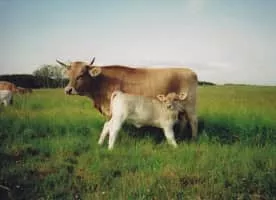 Braunvieh is a breed or group of breeds of domestic cattle originating in Switzerland and distributed throughout the Alpine region. The Braunvieh was originally a triple-purpose breed, used for milk production, for meat and for draught work; the modern Braunvieh is predominantly a dairy breed.