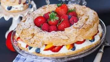 A Paris–Brest is a French dessert, made of choux pastry and a praline flavoured cream.