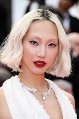 | Hair color | Platinum blonde (dyed) |