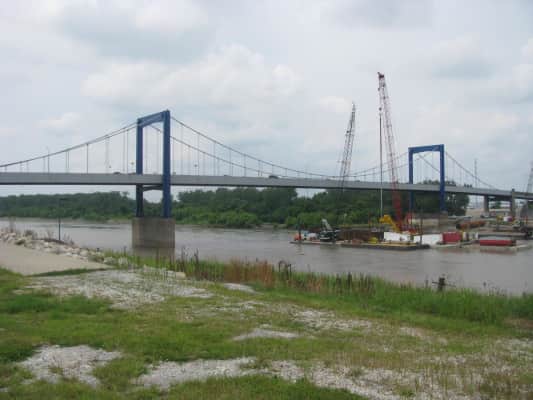 The Paseo Bridge was a suspension bridge over the Missouri River in Kansas City, Missouri. Before being replaced by the Christopher S. Bond Bridge, it carried Interstates 29 and 35 and U.S. Route 71 over the river.