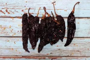 The pasilla chile or chile negro is the dried form of the chilaca chili pepper, a long and narrow member of species Capsicum annuum. Named for its dark, wrinkled skin, it is a mild to hot, rich-flavored chile. As dried, it is generally 6 to 8 in long and 1. 0 to 1. 5 in in diameter.