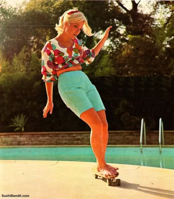 Patti McGee was the 1965 Woman's first National Skateboard Champion, Santa Monica. Her first skateboard was built by her brother in wood shop from her own shoe skate as a surprise. Her second skateboard was a BunBuster.