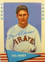 Paul Glee Waner, nicknamed "Big Poison", was an American professional baseball right fielder who played in Major League Baseball for four teams between 1926 and 1945, most notably playing his first 15 seasons with the Pittsburgh Pirates.