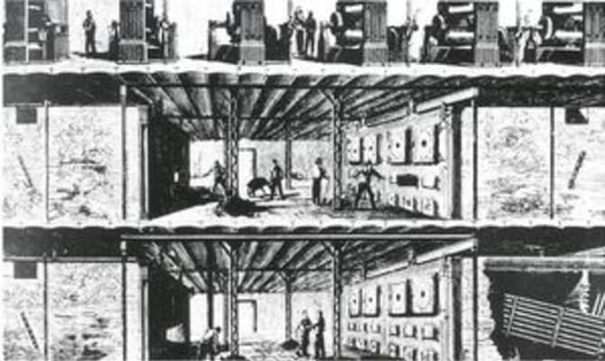 Pearl Street Station was the first commercial central power plant in the United States. It was located at 255–257 Pearl Street in the Financial District of Manhattan, New York City, just south of Fulton Street on a site measuring 50 by 100 feet.