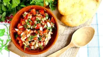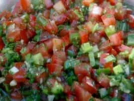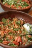 Pebre is a Chilean condiment made of coriander, chopped onion, olive oil, garlic and ground or pureed spicy aji peppers. It may contain also chopped tomatoes. Pebre is most commonly used on bread. It is also used on meat, or when meat such as choripán is provided in a bread roll.
