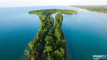 Peche Island, is an uninhabited, currently 86-acre Canadian-owned island in the Detroit River, at its opening into Lake Saint Clair. It is 1. 2 miles east of U. S. -owned Belle Isle, and 360 yards from the Windsor shore. The island was formed from a peninsula of the Canadian shore by the action of the Detroit River.