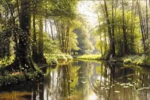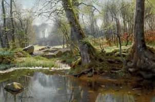Peder Mørk Mønsted was a Danish realist painter. He is best known for his landscape paintings in a realistic style. His favorite motifs include snowy winter landscapes, still water and forests.