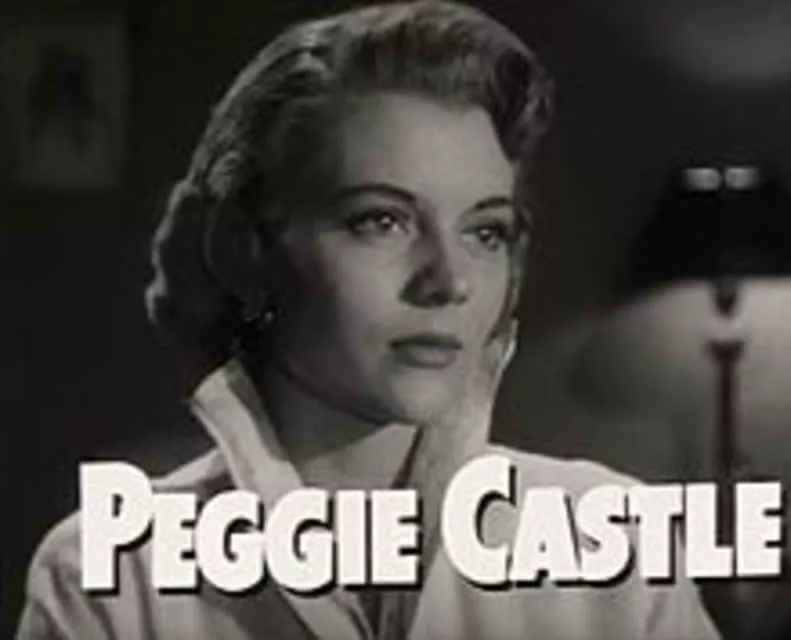 Peggie Castle was an American actress who specialized in playing the "other woman" in B-movies. Castle was Miss Cheesecake in 1949.