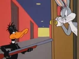 Spoofs the Art Linkletter show "People Are Funny" where people performed different stunts to win money. Starring Bugs Bunny and Daffy Duck.