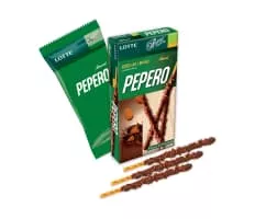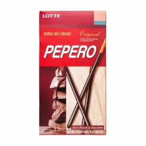 Pepero is a cookie stick, dipped in compound chocolate, manufactured by Lotte Confectionery in South Korea since 1983.