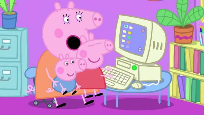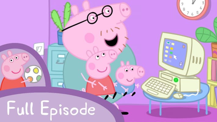 Peppa and George love helping Mummy Pig work on her computer, but they like playing computer games more.