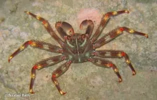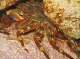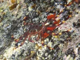 Percnon gibbesi is a species of crab. It is one of at least two species commonly called "Sally Lightfoot", and is also referred to as the nimble spray crab or urchin crab. It has been described as "the most invasive decapod species to enter the Mediterranean".