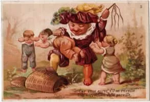 Père Fouettard is a character who accompanies Saint Nicholas on his rounds during Saint Nicholas Day dispensing lumps of coal and/or beatings to naughty children while St. Nicholas gives gifts to the well behaved.