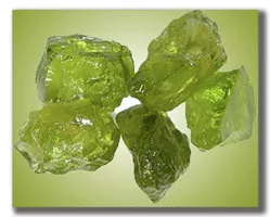 Peridot is gem-quality olivine and a silicate mineral with the formula of (Mg, Fe)₂SiO₄. As peridot is a magnesium-rich variety of olivine, the formula approaches Mg₂SiO₄.