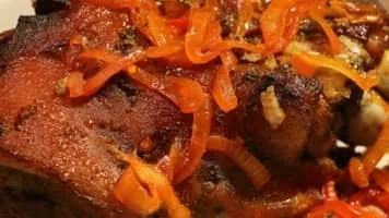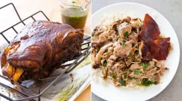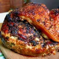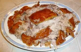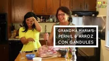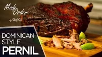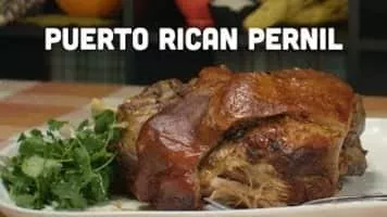 Pernil is a slow-roasted marinated pork leg or pork shoulder. In Latin American countries the dish is commonly shared during Christmas, typically accompanied by arroz con gandules. The pork shoulder is used as a whole piece, with skin and bone.