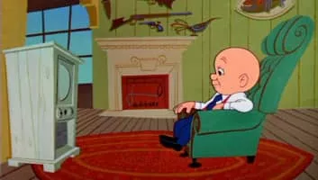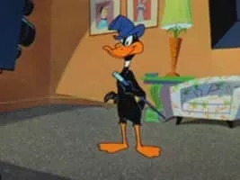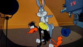 Bugs Bunny is being interviewed on a TV show and Daffy tries to get in on the action.