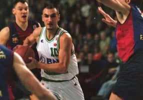 Petar "Pece" Naumoski is a former Macedonian professional basketball player. At a height of 1.95 m tall, and a weight of 95 kg. He played mainly at the point guard position during his career, but he could also play as a shooting guard and a small forward. He was a very skillful play maker.