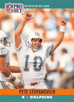 Peter Stoyanovich is an American football placekicker of Macedonian descent. His father Mijalce and his mother Slobodanka are from Ljubojno, North Macedonia. He played with the Miami Dolphins, Kansas City Chiefs and briefly the St. Louis Rams in the National Football League.