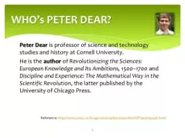 Peter Dear is professor of history and science and technology studies at Cornell University. He is the author of several books, including The Intelligibility of Nature: How Science Makes Sense of the World. ...