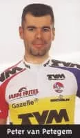 Peter van Petegem is a former professional road racing cyclist. Van Petegem last rode for Quick Step-Innergetic, in 2007. He lived in Horebeke. He was a specialist in spring classics, one of ten riders to win the Tour of Flanders and Paris–Roubaix in the same season.