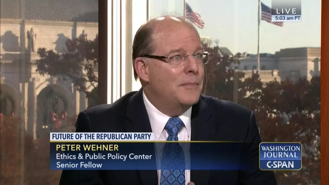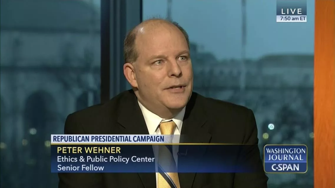 Peter Hermann Wehner is an American writer and former speechwriter for the administrations of three U.S. presidents. He is a vice president and senior fellow at the Ethics and Public Policy Center, a conservative think tank, and a fellow at the Trinity Forum, a nonprofit Christian organization.