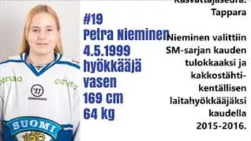 Petra Nieminen is a Finnish ice hockey player for Luleå HF/MSSK of the Swedish Women's Hockey League and alternate captain of Finland women's national ice hockey team. She is considered one of the top young talents in Finnish ice hockey.