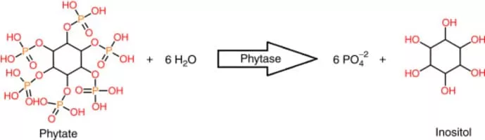 A phytase is any type of phosphatase enzyme that catalyzes the hydrolysis of phytic acid – an indigestible, organic form of phosphorus that is found in grains and oil seeds – and releases a usable form of inorganic phosphorus.