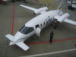 The Piaggio P. 180 Avanti is an Italian executive transport aircraft with twin turboprop engines mounted in pusher configuration. It seats up to nine people in a pressurized cabin, and may be flown by one or two pilots.