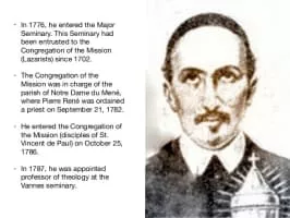 Blessed Pierre-René Rogue was a French Roman Catholic priest and a professed member of the Congregation of the Mission – also known as the "Vincentians". Rogue exercised his pastoral duties in his hometown of Vannes and was known for his short stature and devotion to the faith.