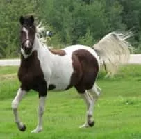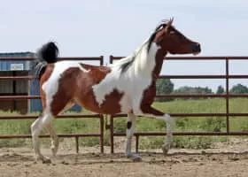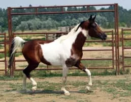 The Pintabian horse is an American part-Arabian horse breed. It has over 99% Arabian blood, but also exhibits the tobiano color pattern, which is not found in purebred Arabians.