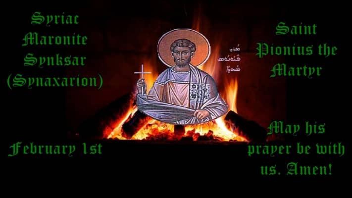 The Martyrdom of Pionius is an account dating from about 250AD to 300 AD of the martyrdom of a Christian from Smyrna named Pionius. It is also known as The Martyrdom of Pionius the Presbyter and His Companions, The Acts of Pionius, and in Latin as Martyrium Pionii or Passio Pionii.