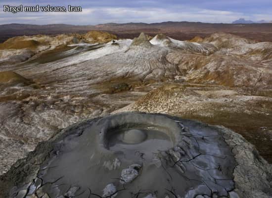 Pirgel is a mud volcano in Iran, in the province Sistan and Balochistan close to the town of Khash. The mud volcano is accessible via a foot track. Mud volcanoes are landforms where water and gas are extruded from the ground.