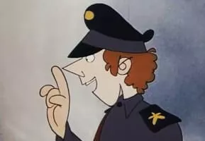 Pityke is a cartoon series about public safety issues (i.e. that thumbing a lift can be dangerous and so on) in the 80s of Hungary. Pityke is a police officer commanded by a robot general. He's the one in charge in patrolling an area.