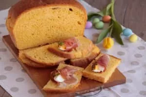 The pizza di Pasqua, in some areas also called crescia di Pasqua, torta di Pasqua, torta al formaggio or crescia brusca, is a leavened savory cake typical of many areas of central Italy based on wheat flour, eggs, pecorino and parmesan.
