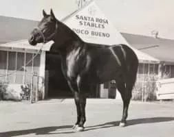 Poco Bueno was a brown American Quarter Horse stallion foaled April 10, 1944. He was sired by King P-234 and out of the mare Miss Taylor who was by Old Poco Bueno. Poco Bueno was named for his maternal grandsire, and the name means pretty good in Spanish.