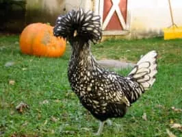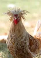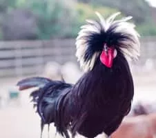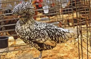 The Polish or Poland is a European breed of crested chickens known for its remarkable crest of feathers. The oldest accounts of these birds come from The Netherlands; their exact origins are unknown, however. In addition to combs, they are adorned with large crests that nearly cover the entirety of the head.