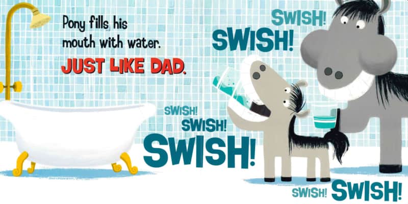 Pony learns to brush his teeth just like his father. Features simple text that helps promote speaking skills and word recognition among emerging readers.