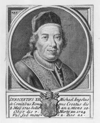 Pope Innocent XIII, born as Michelangelo dei Conti, was head of the Catholic Church and ruler of the Papal States from 8 May 1721 to his death in 1724. He is the last pope to date to take the pontifical name of "Innocent" upon his election.