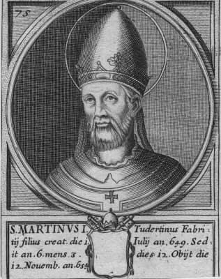 Pope Martin I, also known as Martin the Confessor, was the bishop of Rome from 21 July 649 to his death 16 September 655. He served as Pope Theodore I's ambassador to Constantinople and was elected to succeed him as Pope.