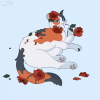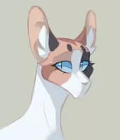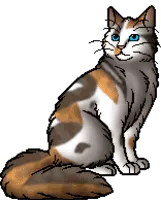 Poppyfrost is a sleek, slender, dappled, pale tortoiseshell-and-white she-cat.
