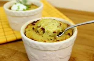 Potato babka is a savoury dish, popular especially in Belarus and Poland, where it is known as babka ziemniaczana. It is made from grated potatoes, eggs, onions, and pieces of smoked, boiled or fried bacon and sausage. It is oven-baked in a crock, and often served with a sauce of sour cream and pork flitch.