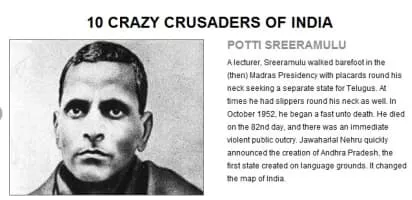 | Known for | Hunger strike for a separate state of Andhra |