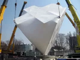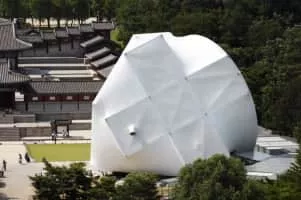 The Prada Transformer is an unusual building which has one of four different apparent shapes, depending on the function for which the building is needed at the moment. The building is roughly in the shape of a tetrahedron.