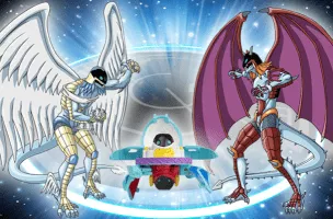 Preyas is the first guardian Bakugan of Marucho Marukura and one of the main protagonists from Bakugan Battle Brawlers and Bakugan New Vestroia, as well as one of the supporting characters from Bakugan Mechtanium Surge. He is a humanoid chameleon-like that he can changes attributes to Darkus, Aquos and Subterra.