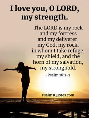 Psalm 18 is the 18th psalm of the Book of Psalms, beginning in English in the King James Version: "I love you, O LORD, my strength.". In the Greek Septuagint and the Latin Vulgate, it is psalm 17 in a slightly different numbering system, known as "Diligam te Domine fortitudo mea".