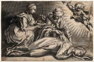 | Attribut | Oil lamp, laurel wreath |