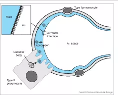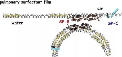 Pulmonary surfactant is a surface-active lipoprotein complex formed by type II alveolar cells. The proteins and lipids that make up the surfactant have both hydrophilic and hydrophobic regions.