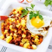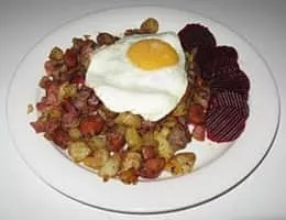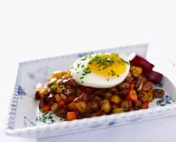 Pyttipanna, also pytt i panne, pytt i panne, pyttipannu, is a hodgepodge of food similar to a hash. The term is Swedish for "small pieces in pan". It is a popular dish in Sweden, Norway and Finland, and in Denmark, where it bears the name biksemad, literally meaning "mixed food".